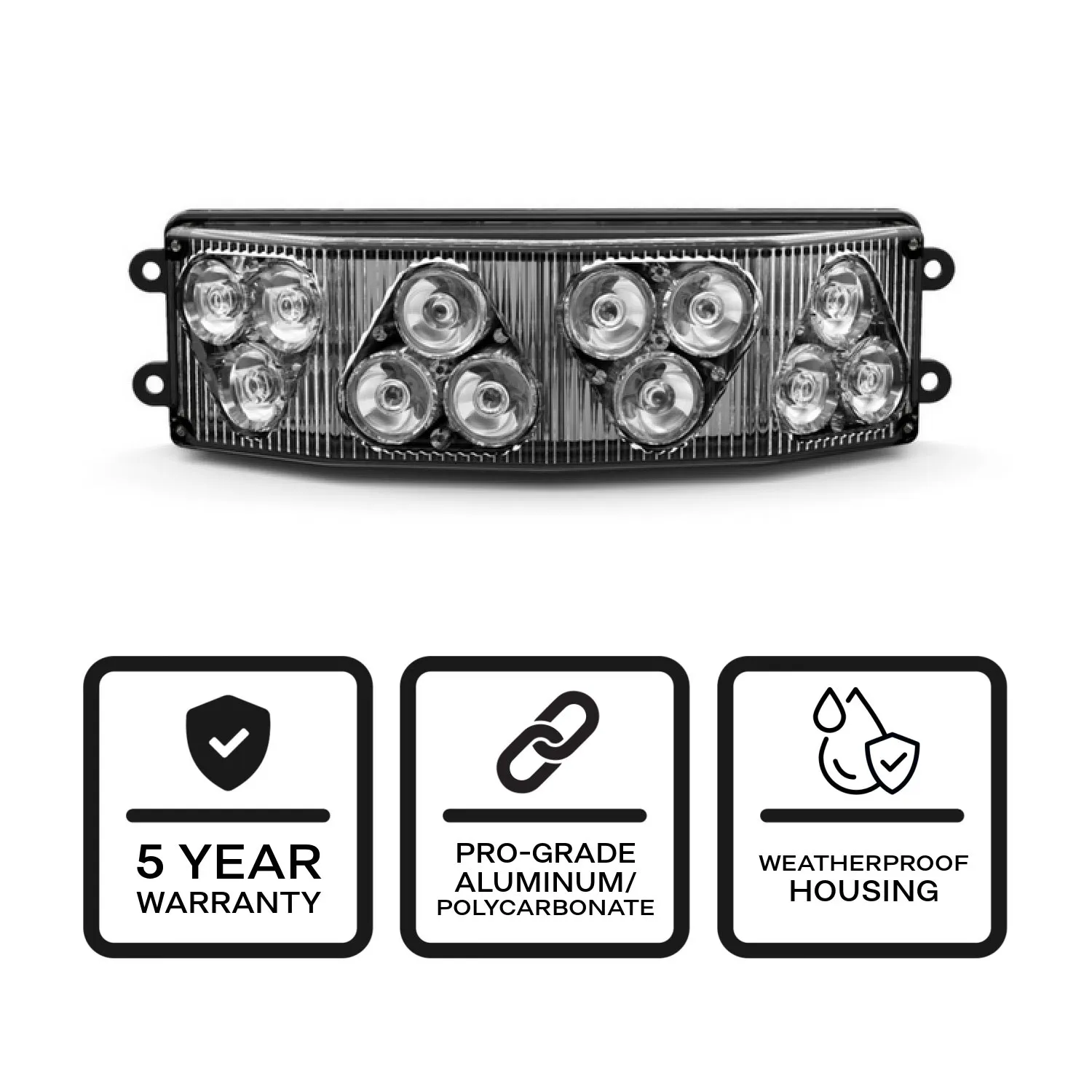 The perfect bundle to equip a vehicle with emergency warning lights, the SpeedTech Lights Half Octo® 180° LED Surface Mount Warning Light 4-pack is a powerful exterior lighting solution. The Half Octo® comes standard with 36 watts of power per unit, 180 degrees of light dispersion, and 30 preprogrammed flash patterns.Complete with our new MaxGen® Eclipse® TIR LED Technology and triangular optic groupings, the Half Octo is designed to for optimal spread and brightness. The units can be easily synched (see Instructional Video) and come in your choice of a variety of industry specific color combinations.