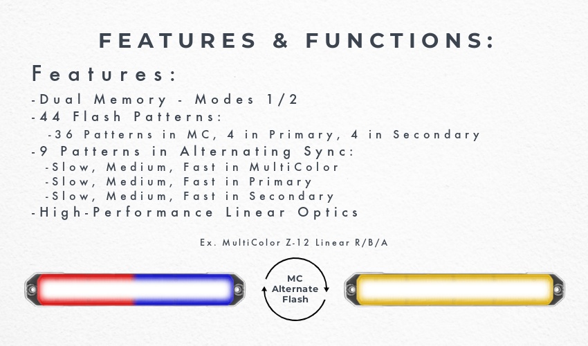 4 PACK MultiColor Z-24® Linear LED Surface Mount Warning Light Heads (Dual Memory)SKU: G-LZMC24P4