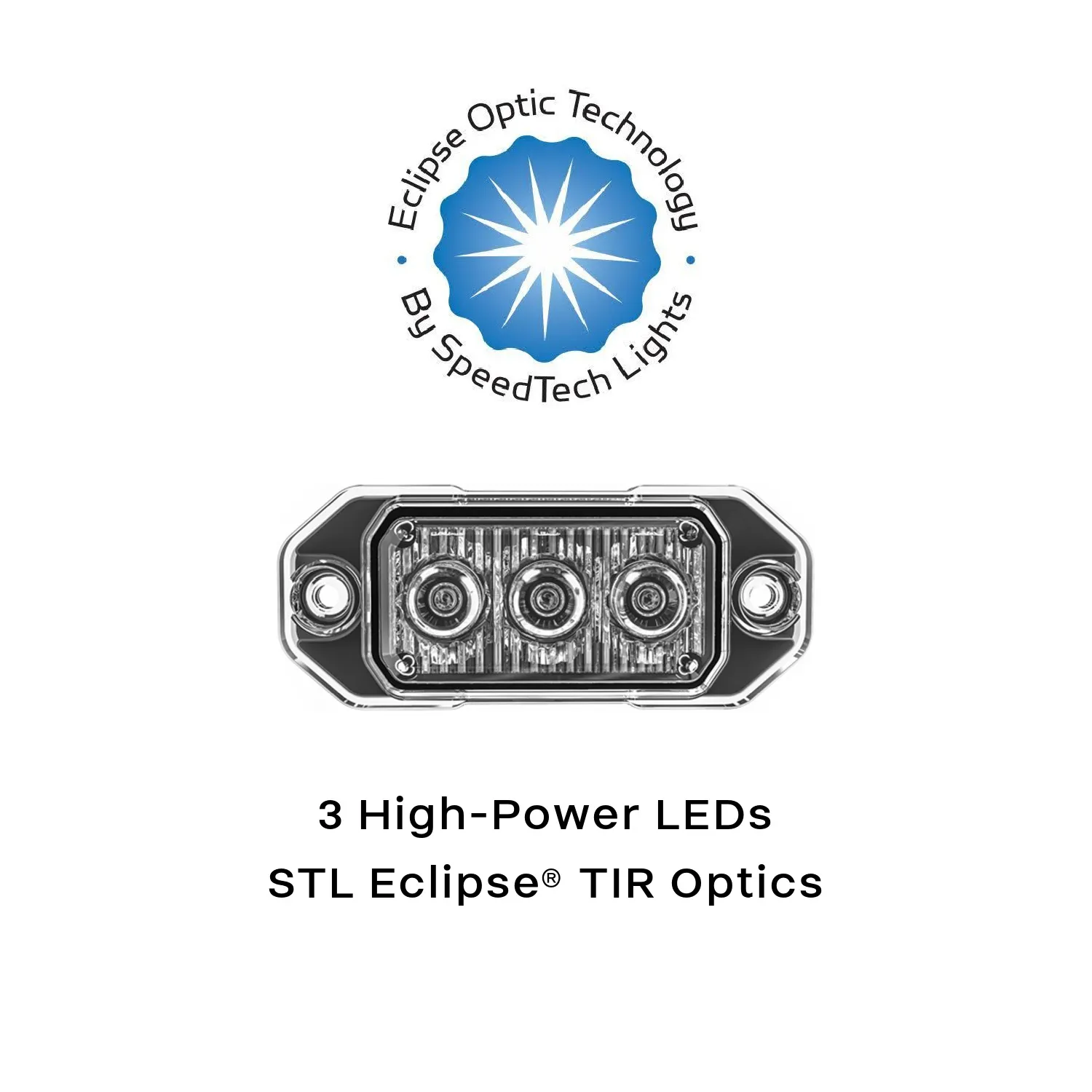 The Z-3® TIR LED Surface Mount is the smallest member of the SpeedTech Lights Z® Series family. The unit houses 3 Eclipse® TIR optics in its super compact and durable casing. An upgrade from our previous generation technology, the MaxGen® Z-3® TIR LED Surface Mount is extremely bright and powerful with a larger optic to enhance the brightness even more.Every unit comes in your choice of Red, Blue, Clear, Green, or Amber and with a variety of unique flash patterns (see video). The Z-3®’s easy install design gives you the flexibility to mount it anywhere on your vehicle’s exterior surface or grille.