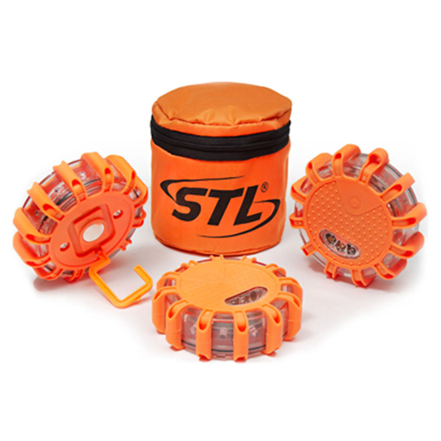 3 Pack of 15 LED Disc LED Road Flares Beacon Lights - AAA Battery and Carrying Case Included SKU: BL-2000C-3P