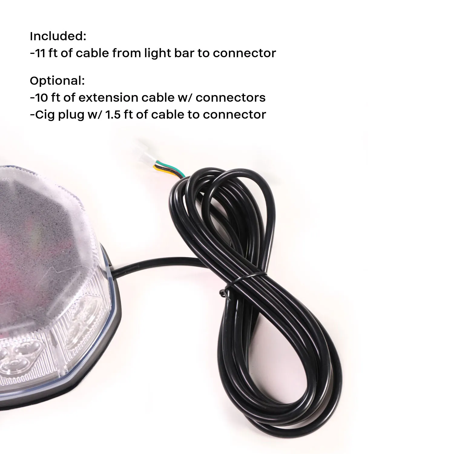- 11' of cable from light bar to connector