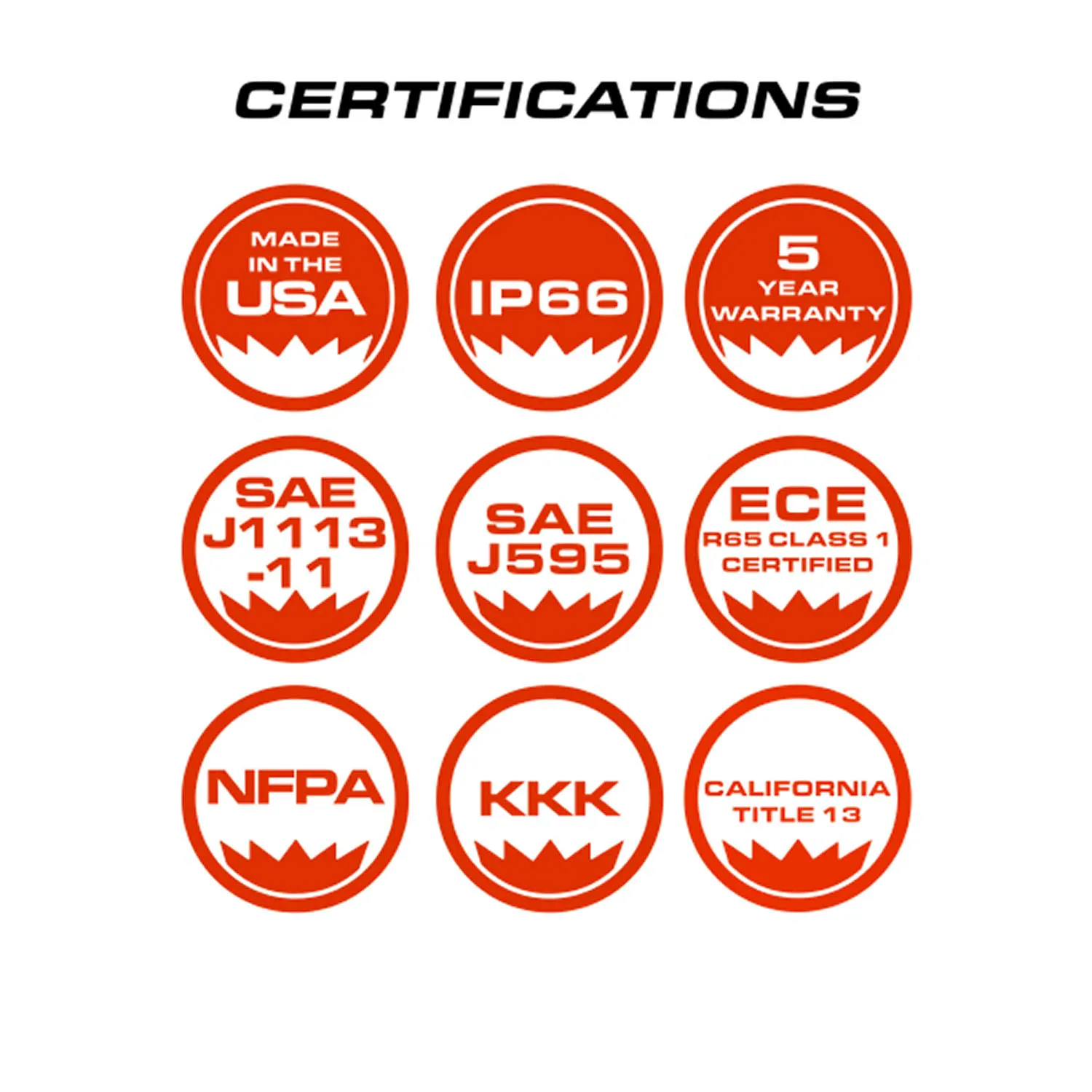 - Meets all SAE, CT13, KKK, NFPA, ECE R65 requirements