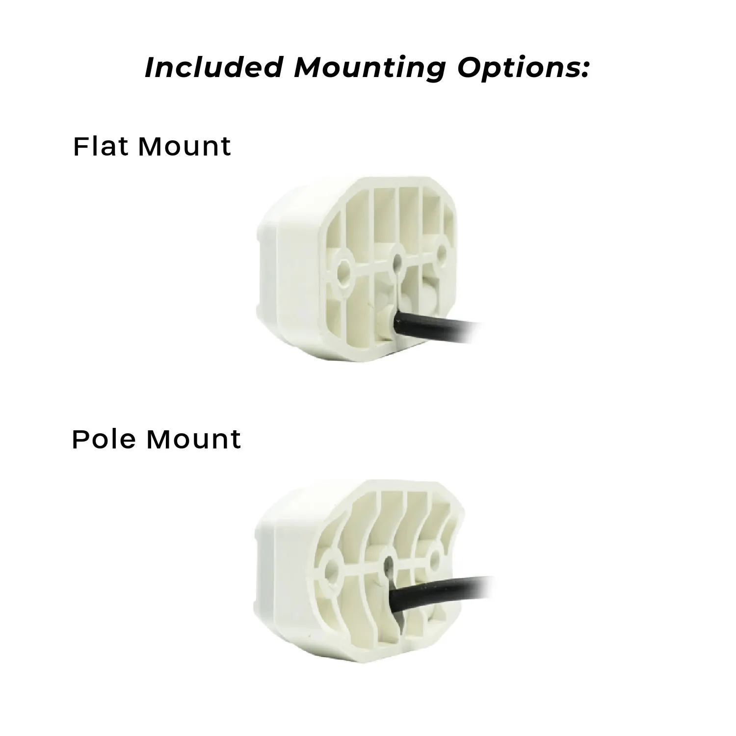 The Marine Lighting Micro Carbine® Off Road LED Surface Mount is the perfect boating LED work light for any watercraft application providing powerful and intense illumination to any surrounding areas. With (6) high power 5-watt LEDs, this compact marine boat light provides much more light than expected. The white housing is a sleek and low-profile design and look to blend perfectly with your boat lighting application. This unit puts out a lumen output of 2,520 lm and 30-watts total intensity.SpeedTech Lights created thismarine grade off road LED surface mount with the intention to be able to mount it anywhere for your boating or off road vehicle lighting needs. With flat and curved rubber bases included for installation, you truly have the freedom to mount this light anywhere.