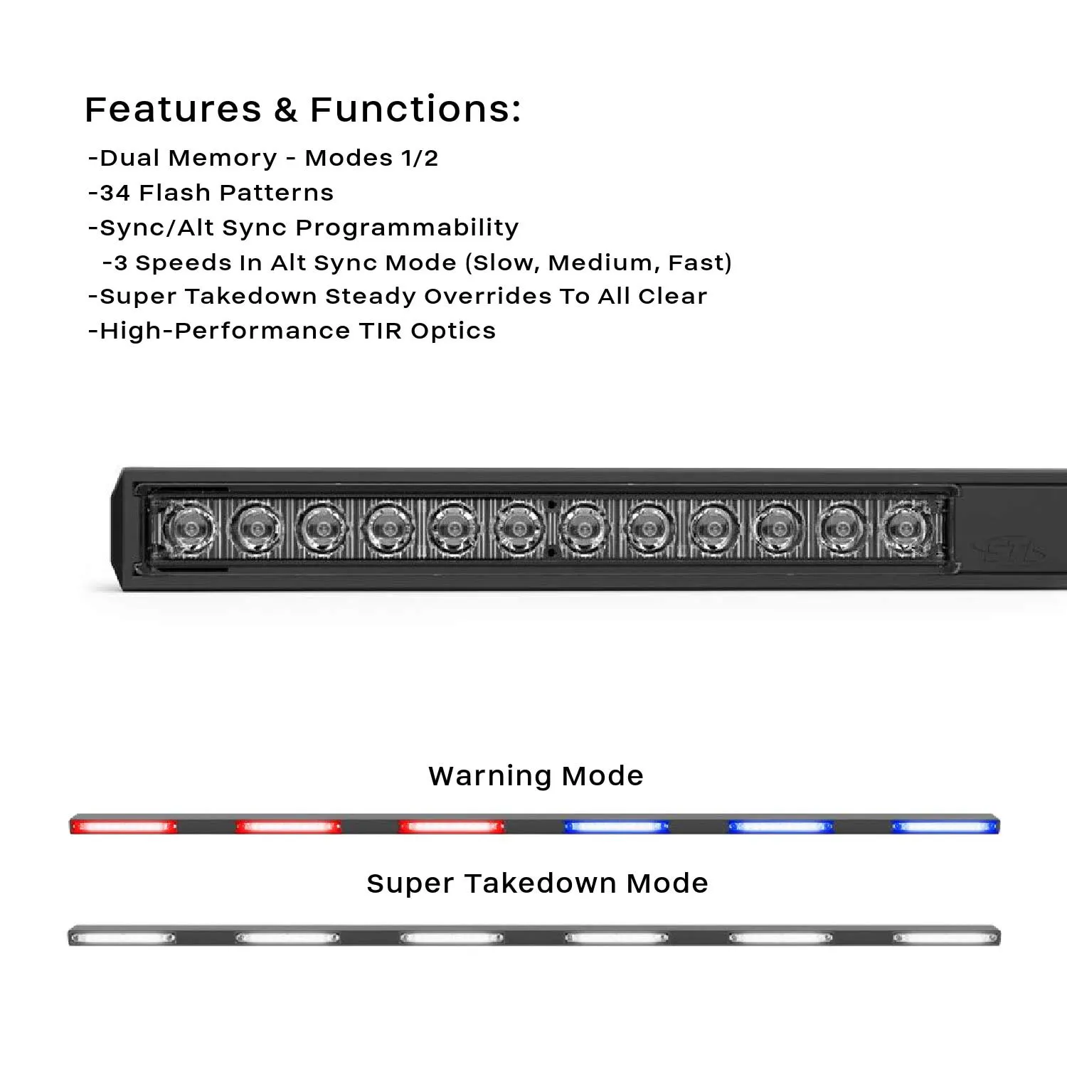 - Super Takedown® functionality switches to all Clear LEDs when Super TD® mode is activated for extreme illumination