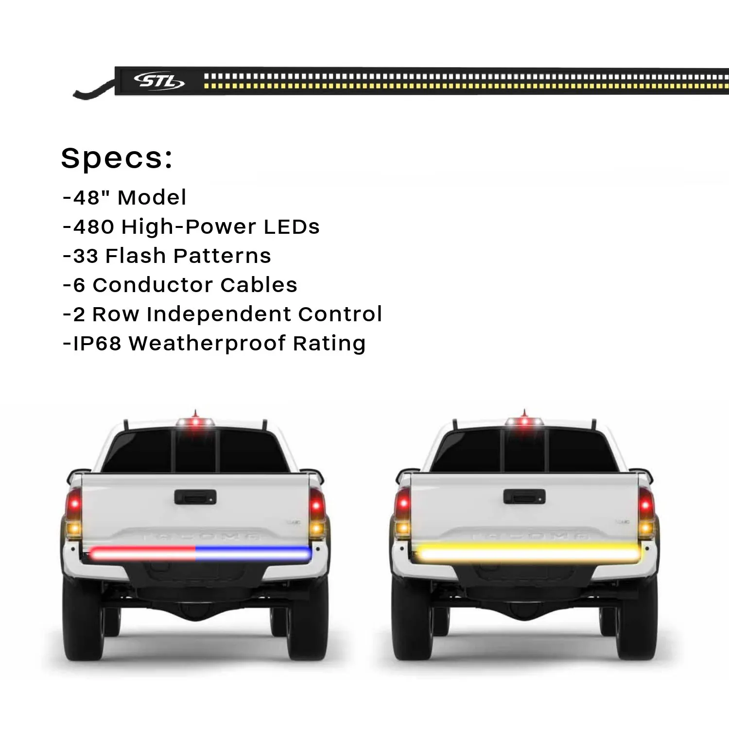 2-Row 48" LED Truck Tailgate Warning Light Bar w/ Reverse STD™ SKU: T-2TGW48