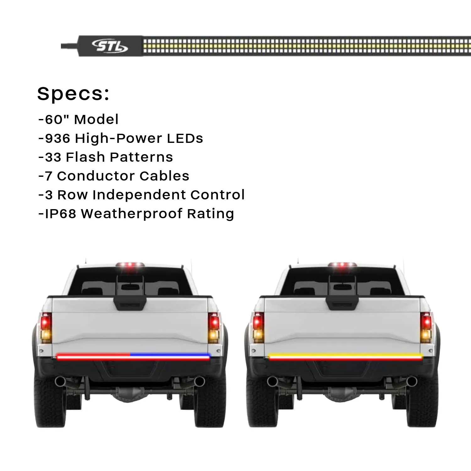 With a bunch of LED truck tailgate light bar options on the market to choose from, SpeedTech Lights introduces this unit at the most competitive price on the market for what you get. And of course, it's backed by our trusted 5-year warranty and our BBB A+ rated service. Stocked and ready to ship! We're here to help you make the best decision for your tailgate warning lighting needs. Contact us with any questions and we will be happy to help!